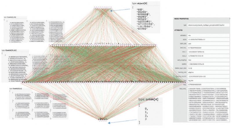 使用類別等比例切分的訓(xùn)練集和驗(yàn)證集對(duì)模型進(jìn)行訓(xùn)練和驗(yàn)證,并獲得模型的評(píng)價(jià)結(jié)果。根據(jù)評(píng)價(jià)結(jié)果,使用編寫的自動(dòng)優(yōu)化程序,不斷調(diào)整每個(gè)隱藏層中節(jié)點(diǎn)個(gè)數(shù)、懲罰系數(shù)、激活函數(shù)等參數(shù),再進(jìn)行模型的訓(xùn)練,最終獲得最優(yōu)的模型(圖 2、圖 3)。