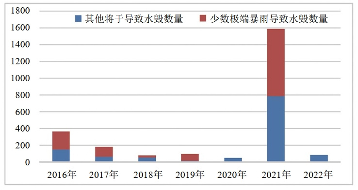 圖 4 2016年以來全年水毀數(shù)量統(tǒng)計
