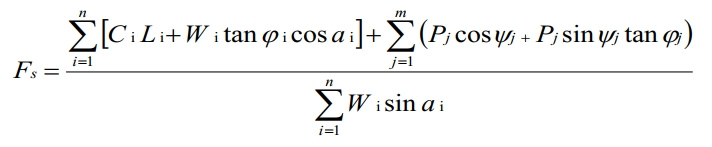邊坡土體穩(wěn)定性由抗滑力矩和滑動力矩兩個因素決定,因此土體邊坡的安全系數(shù)(FS)可以通過以下公式計算: