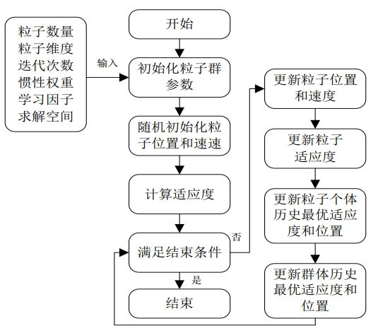 優(yōu)化策略二。神經(jīng)網(wǎng)絡(luò)的訓(xùn)練目標(biāo)是根據(jù)訓(xùn)練集數(shù)據(jù),以損失函數(shù)作為參考,確定網(wǎng)絡(luò)中的權(quán)重和偏置,通過計算機大量運算,推測訓(xùn)練集數(shù)據(jù)間的映射關(guān)系,最后用訓(xùn)練時得出的映射關(guān)系來預(yù)測驗證集數(shù)據(jù)。由此可見,神經(jīng)網(wǎng)絡(luò)中的目標(biāo)參數(shù)權(quán)重和偏置,對模型預(yù)測結(jié)果的影響至關(guān)重要。因此,本文通過粒子群算法(PSO)優(yōu)化目標(biāo)參數(shù),提高神經(jīng)網(wǎng)絡(luò)預(yù)測的準(zhǔn)確性(圖 3)。