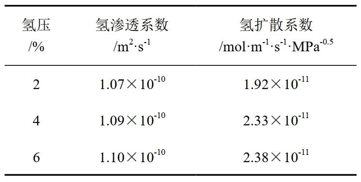 (3)隨著氫壓的增大,X52管線鋼的氫滲透系數(shù)和氫擴散系數(shù)均增大。X52管線鋼中的氫主要存在于晶格間隙,隨著氫壓的增大,鋼中進入的氫更多。