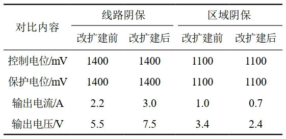 表 1 閥室改擴(kuò)建前后陰保數(shù)據(jù)對(duì)比(恒電位運(yùn)行)