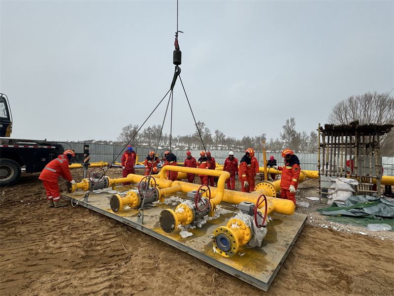 負責此次主要任務的上海維搶修中心,面對工期緊張和運輸時效等特殊情況,統(tǒng)籌3支搶修隊力量,抽調(diào)精兵強將,迅速成立天然氣放空回收作業(yè)黨員先鋒隊,搶修隊員放棄春節(jié)與家人的團聚,全身心投入到準備工作中。中心領(lǐng)導全程指導,盯緊關(guān)鍵環(huán)節(jié)和工序,黨員先鋒隊帶領(lǐng)管焊工不分晝夜,經(jīng)過連續(xù)10天的作戰(zhàn),于2月9日完成106道焊口的組對、焊接、檢測及試壓任務。11日完成管線拆卸裝車,18日運抵3#閥室作業(yè)現(xiàn)場,頂著零下17℃的風雪夜以繼日,按時完成閥室與回收車管線連接任務,共吊裝組對管段38個、緊固螺栓700個。24日完成回收管線安裝和6.27MPa氮氣氣密性試驗試壓工作,同時完成天然氣回收車壓縮機機組測試,正常運轉(zhuǎn)期間承擔巡檢及應急保駕等重要任務。