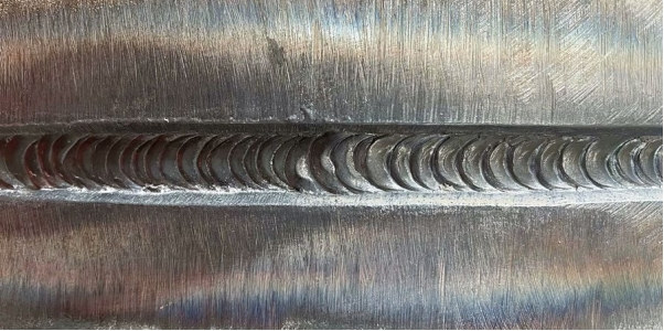 滅弧焊雖然可以避免多種缺陷的產(chǎn)生,但因其是斷續(xù)焊接,焊接速度相對(duì)較慢,操作不當(dāng)時(shí)容易粘焊條,如果不及時(shí)打磨處理,焊縫內(nèi)部極易產(chǎn)生氣孔缺陷。因此,為避免粘焊條現(xiàn)象產(chǎn)生,可適當(dāng)加大焊接電流、增加焊機(jī)推力電流。同時(shí),起弧、滅弧動(dòng)作快速果斷,避免因熔池冷卻時(shí)間過長(zhǎng)再起弧,導(dǎo)致焊道產(chǎn)生夾渣。另外,兩焊波間距不易過大,要使相領(lǐng)兩焊波相疊,形成密鱗片狀,否則會(huì)使焊波脫節(jié),外觀成型不夠美觀。