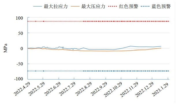 表 1 X01監(jiān)測(cè)拉、壓應(yīng)力閾值