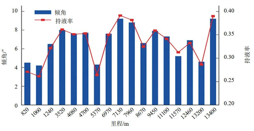 (2)開挖驗證。對上述方法得到的持液率最高點(7130 m)、最低點(1060 m)、記錄點(820 m)進行開挖驗證(圖 3)。結果表明:7130 m處腐蝕深度(剩余壁厚5.4 mm)大于1060 m處腐蝕深度(剩余壁厚5.7 mm);820 m處腐蝕情況較輕(剩余壁厚6.1 mm),說明該方法相較臨界傾角公式判斷更加準確,適用范圍更廣泛。
