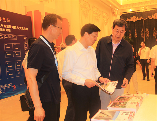 國家管網(wǎng)集團(tuán)科技部總經(jīng)理丁建林(中)參觀《管道保護(hù)》展臺