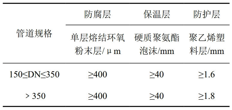 表 2 “管中管法”工藝防腐保溫管結(jié)構(gòu)數(shù)據(jù)