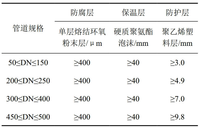 表 1 “一步法”工藝防腐保溫管結(jié)構(gòu)數(shù)據(jù)