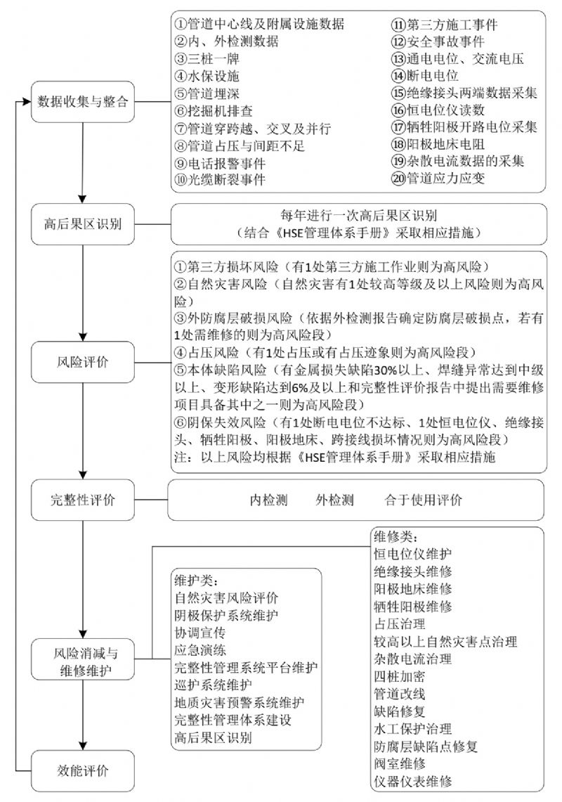 完善體系文件建設(shè)。2018年中石化集團(tuán)公司《中國石化長輸油氣管道完整性管理規(guī)定(試行)》發(fā)布。重點(diǎn)強(qiáng)調(diào)了管道完整性管理,要做好三個(gè)方面工作。一是實(shí)施首次管道完整性管理循環(huán),建立《管道完整性管理方案》;二是建立管道完整性管理體系,確定工作程序、標(biāo)準(zhǔn)與責(zé)任部門,并確保與HSE體系無縫融合;三是建立績效評估機(jī)制,發(fā)現(xiàn)問題,持續(xù)改進(jìn)。