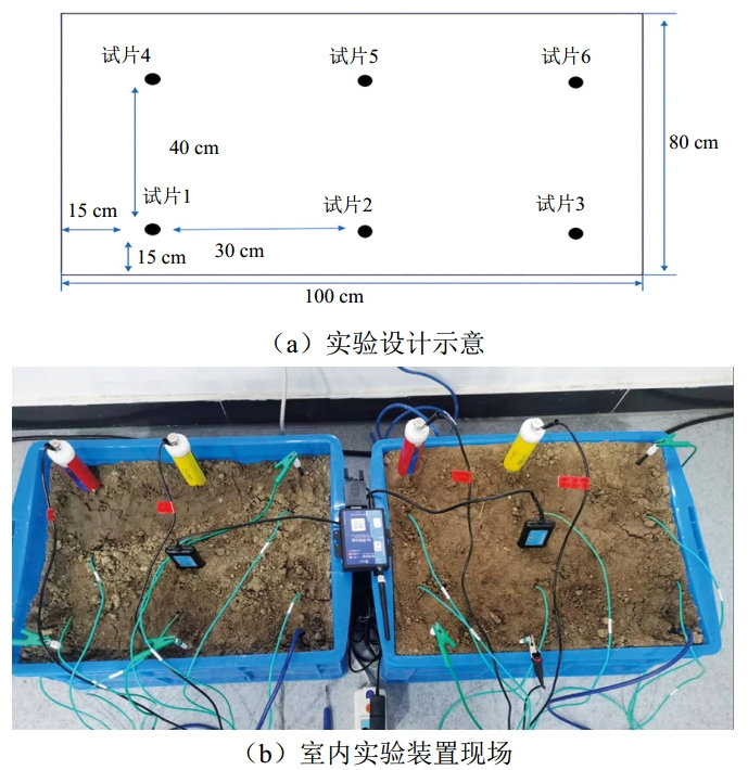 實驗設(shè)計土壤箱尺寸為1 m×0.8 m(圖 1),依次在鹽堿地和非鹽堿地兩種土樣中布設(shè)6個6.5 cm2的試片,埋設(shè)時間8個月,自2024年3月30日至2024年11月30日。屆時取出試片在實驗室進行腐蝕失重分析。