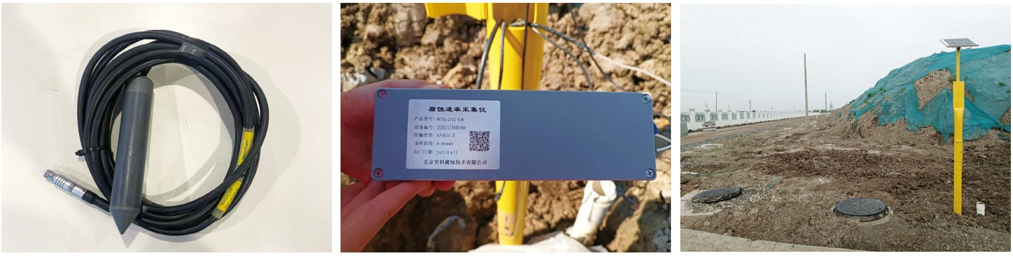 (2)從腐蝕機理分析可以看出,為了減緩鹽堿地金屬管道的腐蝕,除合理選材和增加防腐涂層外,還應(yīng)實施陰極保護,即外加電流或者犧牲陽極,向金屬注入電子,抑制對陽極鐵的腐蝕。管道施加陰極保護后應(yīng)監(jiān)測陰極保護的效果。建議同步安裝ER腐蝕速率探頭監(jiān)測裝置,評估其腐蝕速率減緩幅度。