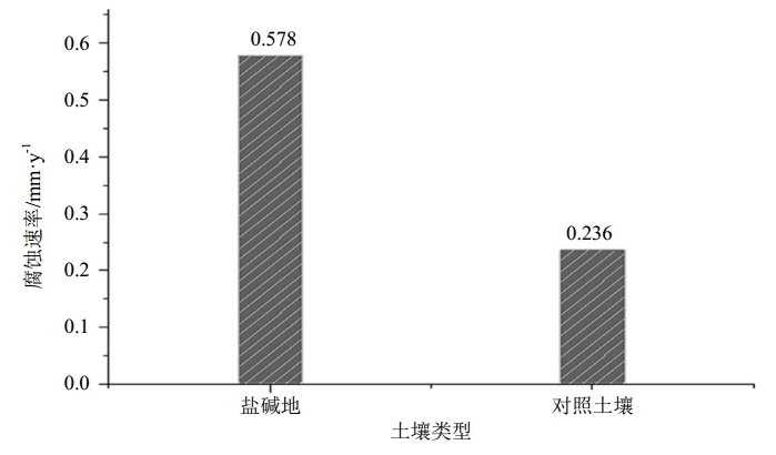 圖 5 鹽堿地和非鹽堿地對照土樣的腐蝕速率