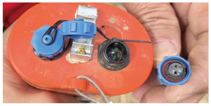 (2)密封。采集儀的密封接頭(圖 2)未擰緊會導(dǎo)致水汽進(jìn)入設(shè)備,引起設(shè)備內(nèi)電器元件腐蝕斷裂,加速設(shè)備老化,加大了設(shè)備故障率,甚至導(dǎo)致設(shè)備永久性損壞。