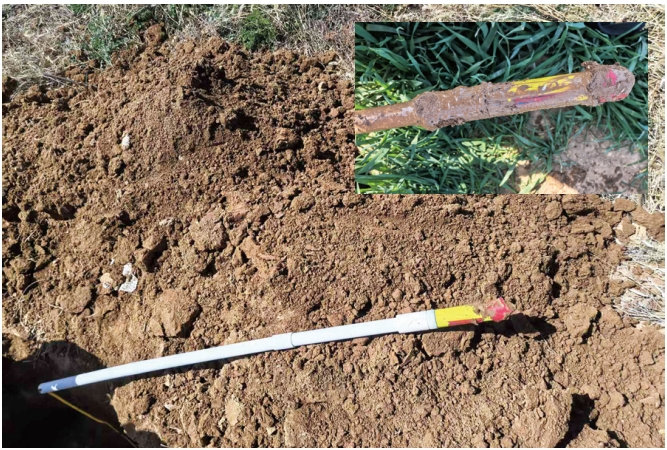 (1)參比電極未去掉保護(hù)帽,F(xiàn)場發(fā)現(xiàn)部分測試樁的參比電極在安裝時未按規(guī)范去掉保護(hù)帽(圖 3),致使其無法與土壤形成有效回路而正常工作,導(dǎo)致采集數(shù)據(jù)失真,直接影響對陰保系統(tǒng)運(yùn)行狀態(tài)的誤判,無法及時發(fā)現(xiàn)管道腐蝕風(fēng)險。