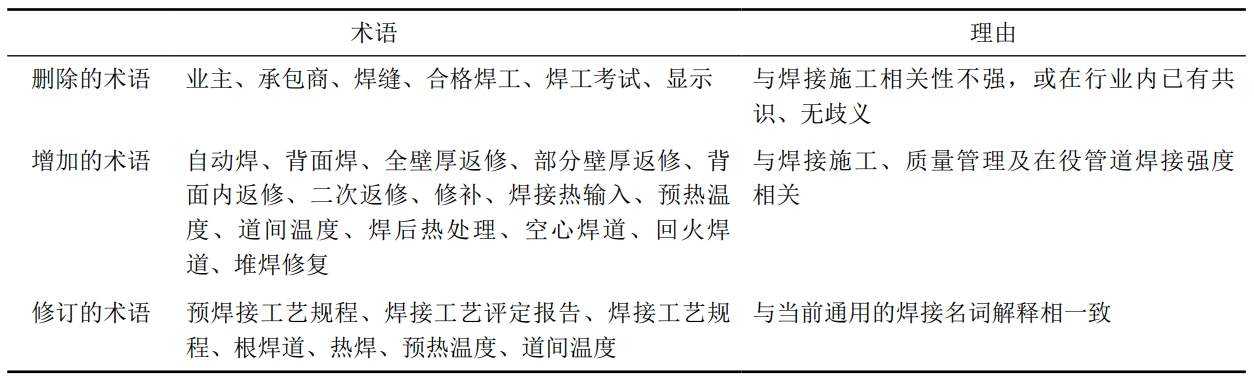 2023版增加、修訂了與返修焊接、焊接工藝文件相關(guān)的術(shù)語名詞,如表 2所示。