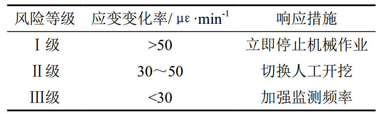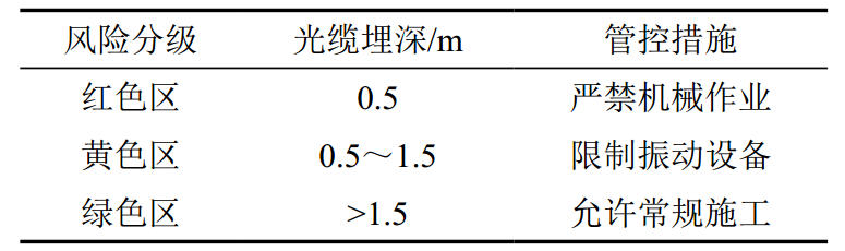 基于應力監(jiān)測數(shù)據(jù),以光纜為中心劃定三級防護區(qū)(表 2),動態(tài)調整施工策略,實現(xiàn)風險分級管控 。